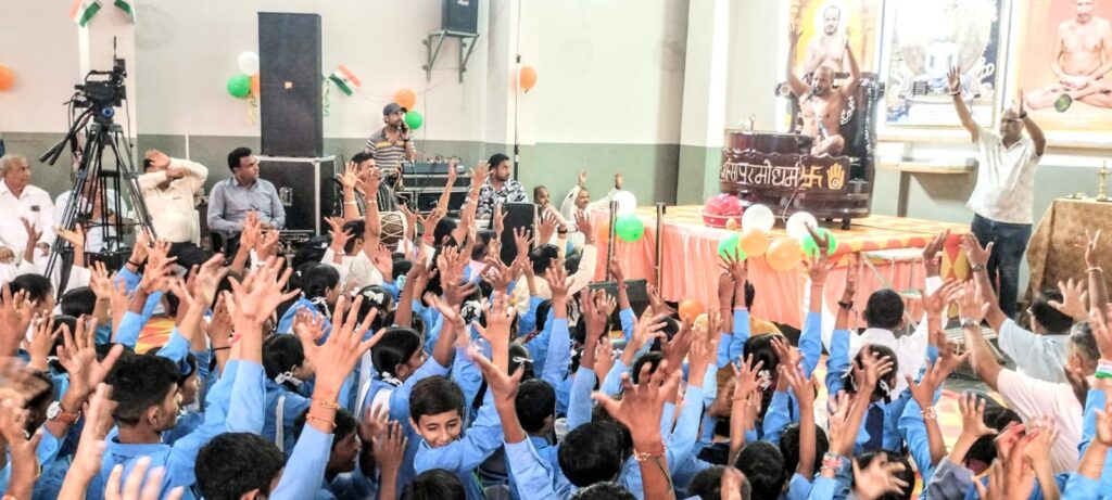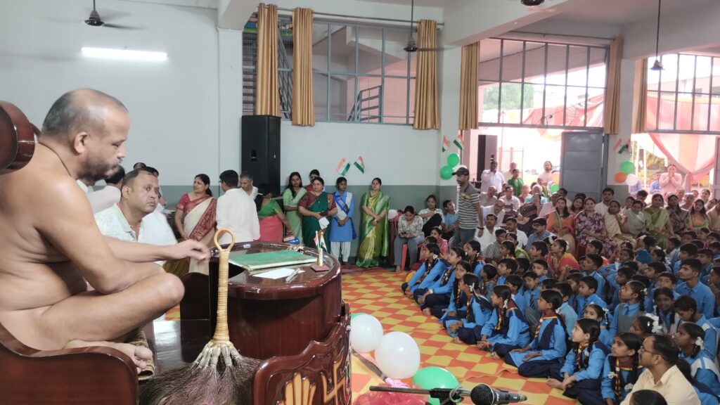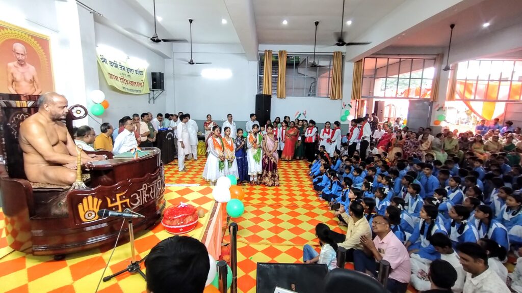 कार्यक्रम का शुभारंभ भगवान महावीर स्वामी के चित्र का अनावरण एवं दीप प्रज्वलन कर किया गया। इसके पश्चात विद्यालय के विद्यार्थियों द्वारा देशभक्ति गीतों पर भावविभोर कर देने वाली सुंदर प्रस्तुतियाँ दी गईं, जिन्हें पूज्य आचार्य श्री ने आशीर्वाद स्वरूप सराहा।____इस अवसर पर कार्यक्रम के मुख्य अतिथि श्री संजय जैन जी का पटका पहनाकर एवं स्मृति चिन्ह भेंट कर सम्मानित किया गया। तत्पश्चात ध्वजारोहण कर राष्ट्रगान गाया गया। पुष्प वर्षायोग समिति द्वारा बच्चों को पुरस्कृत किया गया तथा शिक्षकों एवं अन्य स्टाफ का भी पुष्प वर्षा कर सम्मान किया गया।____पूज्य आचार्य श्री ने अपने प्रेरणादायी प्रवचन में विद्यार्थियों को संबोधित करते हुए कहा जब तक हमारे बच्चों के हाथ समाज सेवा, देश सेवा और परिवार सेवा में सक्रिय रहेंगे, तब तक जीवन में दुःख, कष्ट और बंधनों का आगमन नहीं होगा। शिक्षा के साथ-साथ संस्कार भी अत्यंत आवश्यक हैं। बड़े-बुजुर्गों की ज्ञानवर्धक बातों को ध्यानपूर्वक सुनना चाहिए और मन में यह संकल्प होना चाहिए कि हमारे माता-पिता, जिन्होंने हमें यहाँ तक पहुँचाया है, उन्हें हमारे कारण कभी कोई कष्ट न हो। जिस देश में हम जीवन व्यतीत करते हैं, वह फिर कभी गुलामी की ओर न झुके।”____उन्होंने आगे कहा कि आज से 70–80 वर्ष पूर्व छोटे-छोटे बच्चों में यह जज्बा था, लेकिन पाश्चात्य संस्कृति के प्रभाव और हमारी एकता के अभाव में अंग्रेजों ने हम पर दो शताब्दियों तक शासन किया। जब हमारे बच्चों के जीवन में व्यसन आता है, तो हमारे परिवार की दरिद्रता बढ़ती है; और जब शिक्षक केवल धन के पीछे भागते हैं, संस्कारों के नहीं, तो भारत का भविष्य अधूरा रह जाता है।_____कार्यक्रम के समापन पर पुष्प वर्षायोग समिति द्वारा विद्यालय प्रबंधन समिति, शिक्षकगण, समस्त स्टाफ एवं विद्यार्थियों को इस सफल, अनुशासित एवं भव्य आयोजन के लिए हार्दिक धन्यवाद ज्ञापित किया गया।_____मधु सचिन जैन