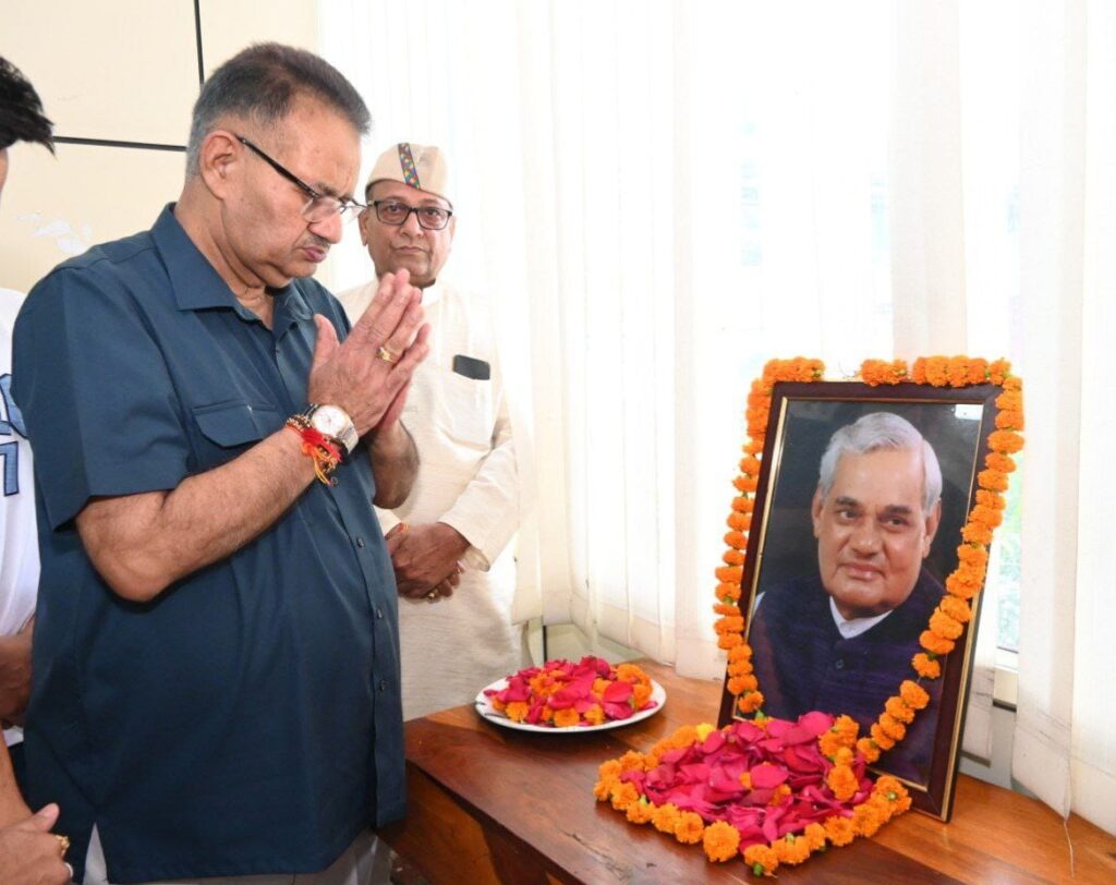 पूर्व प्रधानमंत्री भारत रत्न श्रद्धेय अटल बिहारी वाजपेयी को पुष्पांजलि अर्पित करते कैबिनेट मंत्री गणेश जोशी