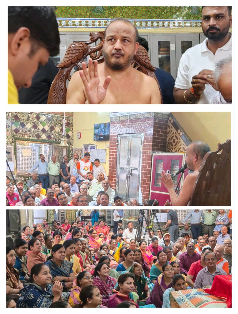 प्रातः 8:30 से 9:30 बजे तक मंदिर में आचार्य श्री का मंगल प्रवचन आयोजित हुआ। अपने सारगर्भित प्रवचनों में आचार्य श्री ने कहा “रावण के भीतर इगो था – जब तक इगो रहता है, ईश्वर बाहर रहता है। ई मतलब ईश्वर और गो मतलब जाना। जब भीतर कुछ और और बाहर कुछ और होता है, तो मन विचलित रहता है। इंसान का आत्मविश्वास सही दिशा में हो, यह जरूरी है। आज की राजनीति और धर्मनीति शर्तों पर आधारित हो गई हैं, जिससे मनुष्य के अंदर षडयंत्रों का जागरण होता है।” जिसके फल स्वरुप परिवार का समाज का विघटन होता है।जो नहीं होना चाहिए सही और गलत की पहचान भी गुरुओं के संतो के संगति और संगत से आभास होती हैं। जिससे हम कई तरह की विसंगतियों से दूर रहकर गुरु हमारा सही मार्ग प्रशस्त करते हैं_____प्रवचन के पश्चात आचार्य श्री का प्रवास श्री मनोहर लाल जैन धर्मार्थ चिकित्सालय और श्री आयुष जैन (सीमेंट वालों) के निवास स्थान, आनंद चौक पर आरंभ हुआ।
