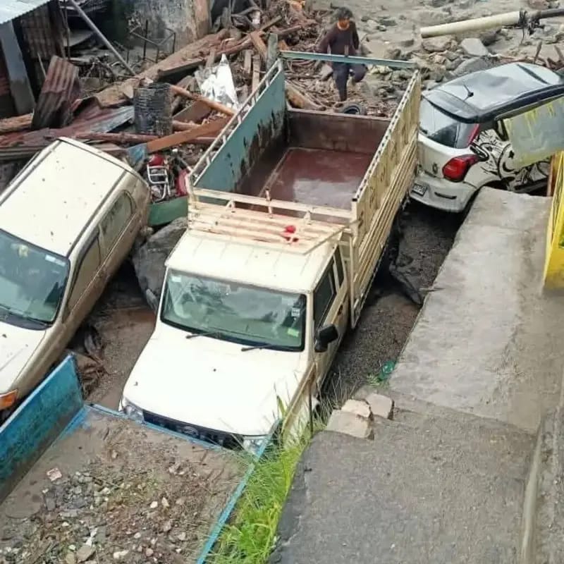 थराली में बादल फटने से तबाही, दर्जनों वाहन मलबे में दबे, तीन लोग लापता