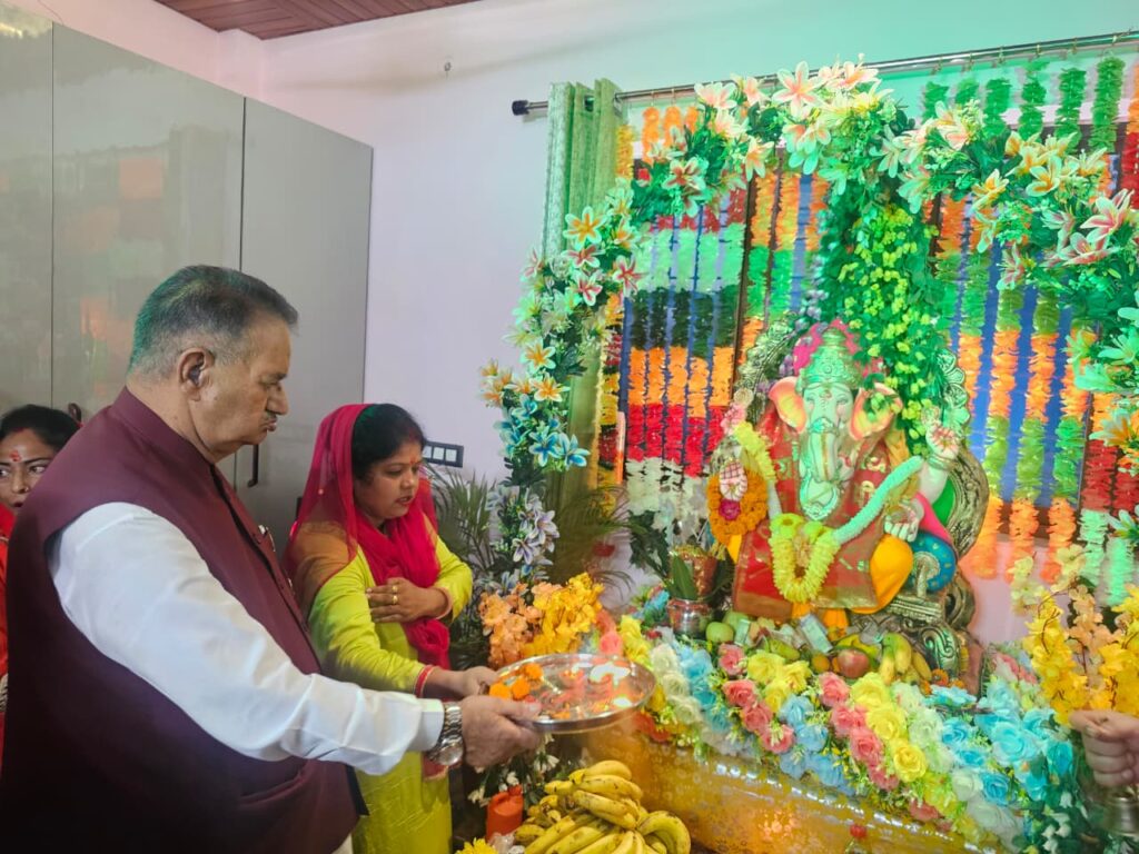 देहरादून____ 29 अगस्त। कैबिनेट मंत्री गणेश जोशी आज देहरादून के जाखन स्थित रेखा राजपूत के आवास पर आयोजित गणपति महोत्सव में सम्मिलित हुए। इस अवसर पर उन्होंने विधिविधान से गणपति बप्पा की पूजा-अर्चना कर आशीर्वाद प्राप्त किया। कैबिनेट मंत्री ने इस दौरान प्रदेशवासियों के सुख, शांति और समृद्धि की कामना भी की।