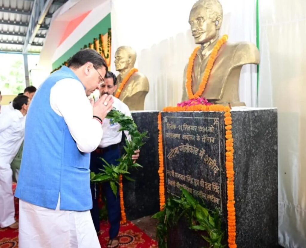 मुख्यमंत्री श्री पुष्कर सिंह धामी ने मसूरी गोलीकांड की 31वीं बरसी की पूर्व संध्या पर मसूरी के शहीद आंदोलनकारियों को नमन करते हुए कहा कि हमारे राज्य आंदोलनकारियों ने उत्तराखण्ड राज्य निर्माण के लिये अपनी जान की परवाह किये बिना अपना सर्वस्व न्यौछावर किया है। उन्होंने कहा कि शहीद आंदोलनकारियों ने जो सपने उत्तराखंड के लिए देखे थे, उन्हें पूरा करने का कार्य राज्य सरकार कर रही है।___मुख्यमंत्री ने कहा कि 1 सितंबर को खटीमा कांड, 2 सितंबर को मसूरी और 2 अक्टूबर को रामपुर तिराहा कांड हुआ, ये तीनों दिन हमारे राज्य के इतिहास में एक काले अध्याय के रूप में दर्ज हैं। उन्होंने कहा कि हम अपने अमर शहीदों के सर्वोच्च बलिदान को कभी भूला नहीं सकते। मुख्यमंत्री ने कहा कि उत्तराखण्ड राज्य निर्माण में अपने प्राणों की आहुति देने वाले राज्य आन्दोलनकारियों के बलिदान को प्रदेश हमेशा याद रखेगा।