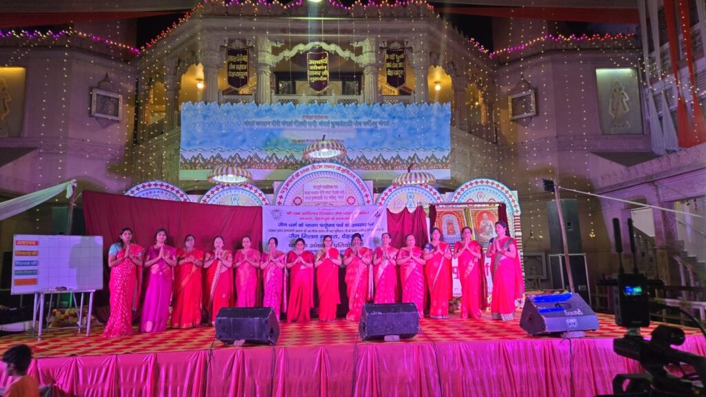 आचार्य श्री 108 सौरभ सागर जी महामुनिराज के मंगल सानिध्य में दसलक्षण पर्व का उत्तम आकिंचन्य धर्म पर भगवान की पूजा अर्चना की गयी