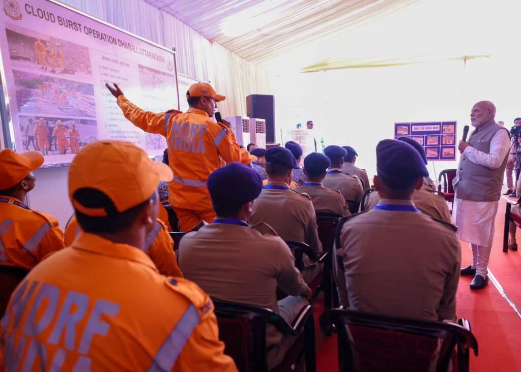उत्तराखंड में प्राकृतिक आपदा से हुए नुकसान का जायजा लेने पहुंचे प्रधानमंत्री श्री नरेंद्र मोदी ने गुरुवार को जौलीग्रांट एअरपोर्ट पर आपदा राहत कार्यों की गहन समीक्षा की। प्रधानमंत्री ने इस दौरान अलग-अलग क्षेत्रों में आपदा से हुए नुकसान का विस्तार से जानकारी लेने के साथ ही राहत एवं बचाव कार्यों की ताजा स्थिति और भविष्य की चुनौतियों पर राज्यपाल ले.ज. गुरमीत सिंह (से.नि.), मुख्यमंत्री श्री पुष्कर सिंह धामी, केन्द्रीय राज्य मंत्री अजय टम्टा तथा राज्य के सांसदों सहित वरिष्ठ अधिकारियों के साथ विचार-विमर्श किया। प्रधानमंत्री श्री नरेंद्र मोदी ने धराली, थराली सहित राज्य के आपदा प्रभावित अन्य क्षेत्रों में संचालित राहत एवं बचाव अभियानों में एनडीआरएफ, एसडीआरएफ सहित राज्य सरकार के विभिन्न विभागों के प्रयासों की सराहना की और राहत बचाव कार्यों में जुटे राज्य व केन्द्र सरकार के संगठनों के कार्मिकों से भेंट कर उनके अनुभव साझा किए। प्रधानमंत्री ने आपदा पीड़ितों से भी मुलाकात कर उनका ढांढस बंधाने के साथ ही समुचित मदद का भरोसा दिलाया।____इस अवसर पर मुख्यमंत्री श्री पुष्कर सिंह धामी ने राज्य में आपदा से हुई क्षति तथा प्रभावित क्षेत्रों में संचालित राहत एवं बचाव कार्यों की जानकारी दी। मुख्यमंत्री ने कहा कि प्रभावित क्षेत्रों में राहत एवं बचाव के अभियान पूरी तत्परता एवं क्षमता के साथ संचालित करने में केन्द्र सरकार के संगठनों से भरपूर सहयोग मिला है। जिसके चलते प्रभावितों तक त्वरित गति से समुचित राहत पहॅॅंुचाना संभव हो सका। मुख्यमंत्री ने कहा कि आपदा प्रभावित क्षेत्रों में सड़कों एवं सार्वजनिक परिसंपत्तियों को काफी नुकसान पहुंचा है। प्रभावित इलाकों में बुनियादी सुविधाओं की बहाली के लिए युद्धस्तर पर काम किया जा रहा है।_____इस अवसर पर सांसद एवं भाजपा प्रदेश अध्यक्ष श्री महेन्द्र भट्ट, सांसद अजय भट्ट, श्री त्रिवेन्द्र सिंह रावत, श्री अनिल बलूनी, श्रीमती माला राज्य लक्ष्मी शाह, श्री नरेश बंसल, श्रीमती कल्पना सैनी, मुख्य सचिव श्री आनन्द बर्द्धन एवं पुलिस महानिदेशक श्री दीपम सेठ आदि उपस्थित रहे।______उत्तराखंड में आपदा से हुए नुकसान की भरपाई हेतू राहत पैकेज की घोषणा के लिए मैं प्रधानमंत्री श्री नरेंद्र मोदी जी का उत्तराखंड की जनता की तरफ से आभार व्यक्त करता हूं। उत्तराखंड में आई प्राकृतिक आपदा से निपटने में राज्य सरकार पूरी क्षमता के साथ प्रयास कर रही है, इस कार्य में पहले ही दिन से ही केंद्र सरकार का सहयोग मिल रहा है। प्रधानमंत्री श्री नरेंद्र मोदी ने स्वयं उत्तराखंड आकर, आपदा पीड़ितों का दुःख-दर्द साझा किया है। राज्य के प्रति आत्मीयता व संवेदनशीलता के लिए माननीय प्रधानमंत्री 