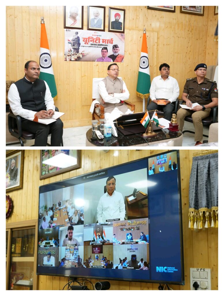 मुख्यमंत्री ने लोहियाहेड अतिथि गृह, खटीमा में राष्ट्रीय एकता के प्रतीक, लौह पुरूष सरदार बल्लभ भाई पटेल की 150वीं जयन्ती वर्ष के उपलक्ष्य में Sardar@150 Campaign की तैयारियों के सम्बध में वर्चुअल बैठक की