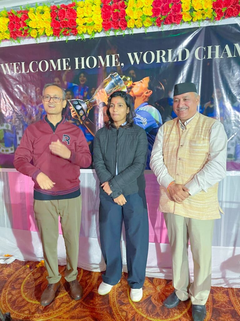 देहरादून****** 08 नवंबर 2025 – भारतीय महिला क्रिकेट टीम की सदस्य स्नेह राणा का देहरादून में भव्य स्वागत किया गया। स्नेह राणा ने महिला क्रिकेट विश्वकप में अपने और अपने साथियों के साथ मिलकर भारत को प्रथम बार विश्व कप चैंपियन बनाने में महत्वपूर्ण भूमिका निभाई थी।*****भारतीय रैड क्रास सोसायटी उत्तराखंड के कोषाध्यक्ष, समाजसेवी और राज्य आंदोलनकारी श्री मोहन खत्री जी द्वारा उनका माल्यार्पण करके स्वागत किया गया। श्री खत्री जी ने कहा कि स्नेह राणा की इस सफलता पर पूरे राज्य को गर्व है और वे उम्मीद करते हैं कि वे भविष्य में भी ऐसा ही प्रदर्शन करके अपने परिवार और राज्य का नाम रोशन करेंगी।*******स्नेह राणा की इस सफलता पर हार्दिक बधाई और भविष्य के लिए शुभकामनाएं