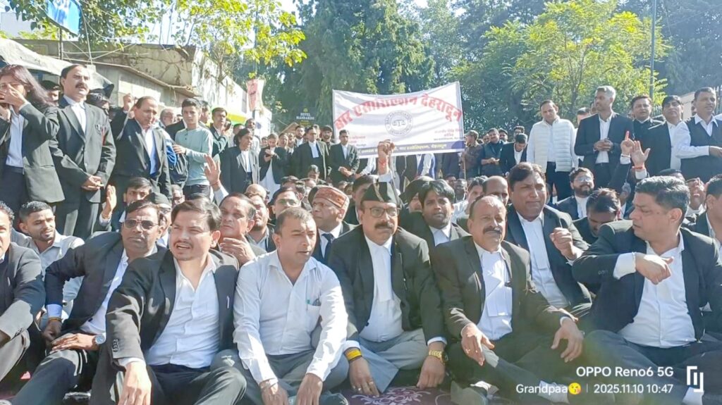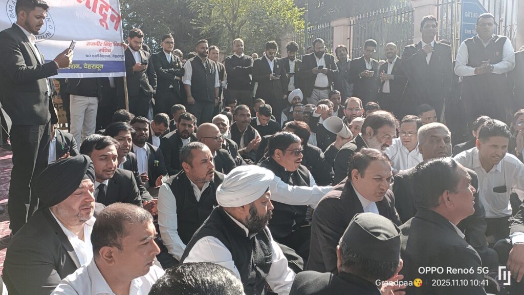 देहरादून__ 09 नवंबर 2025 – बार एसोसिएशन देहरादून ने उत्तराखंड सरकार के खिलाफ आंदोलन किया है। बार एसोसिएशन के अनुसार, सरकार द्वारा अधिवक्ताओं के चैंबर निर्माण से संबंधित किसी भी नीति में सहयोग नहीं किया जा रहा है, जिससे अधिवक्ताओं के भविष्य पर संकट उत्पन्न हो गया है।