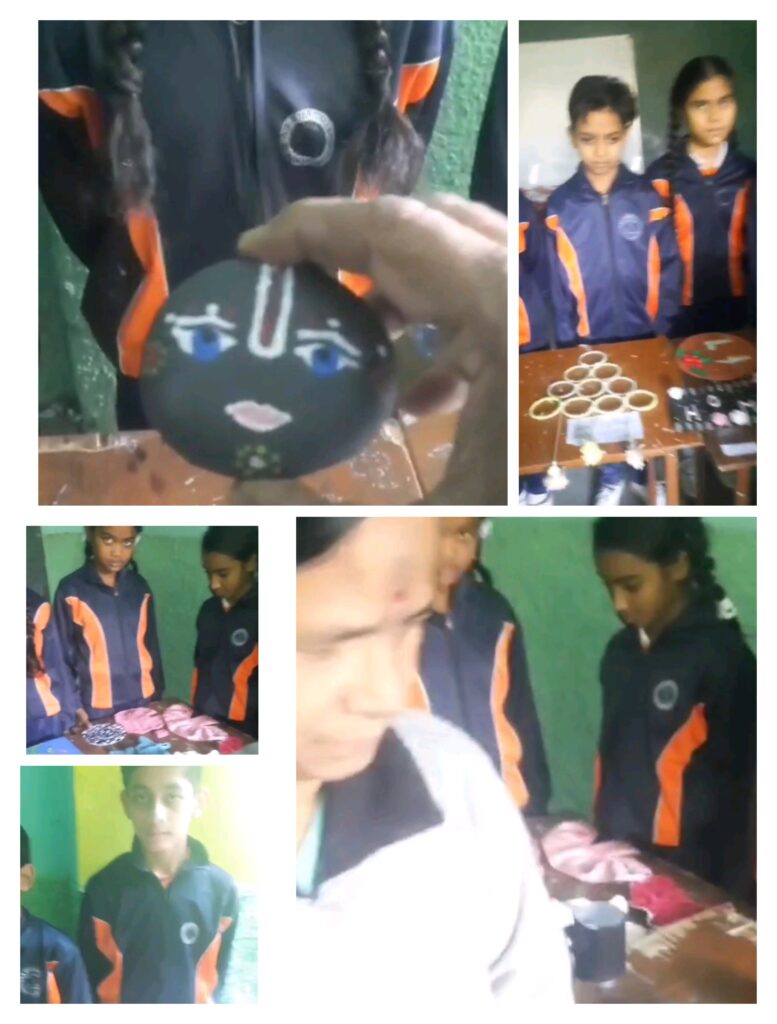 प्रदर्शित क्राफ्ट की झलक:______इलेक्ट्रिक कलर घर – बेकार इलेक्ट्रिक सामान से बना छोटा घर।,,,,,,डिस्पोजल गिलास से बना बल्ब होल्डर।,,,,,, किरिंग ,,,,मैट – चूड़ियों से सजावटी। ,,,,,,हैंगिंग डेकोरेशन मैटेरियल – कागज और अन्य वेस्ट से बने झूमर व सजावटी वस्तुएं।