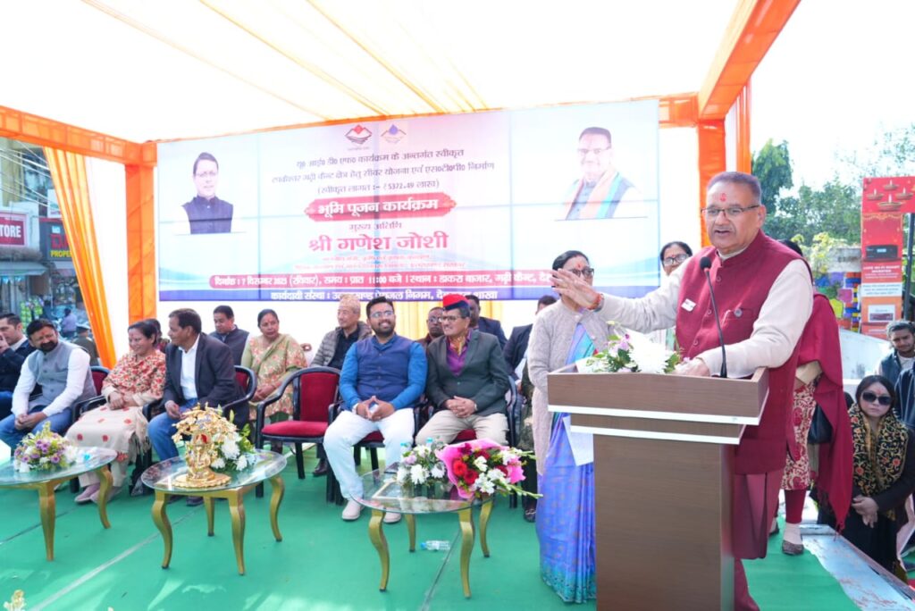देहरादून______ 07 दिसम्बर। कैबिनेट मंत्री गणेश जोशी ने आज गढ़ी कैंट स्थित डाकरा बाजार में मसूरी विधानसभा क्षेत्र के अंतर्गत ₹53.72 करोड़ की लागत से बनने वाले टपकेश्वर–गढ़ी कैंट सीवर लाइन परियोजना का विधिवत भूमिपूजन किया। इस अवसर पर कैबिनेट मंत्री गणेश जोशी ने कहा कि ₹53.72 करोड़ की लागत से बनने वाली यह महत्वपूर्ण परियोजना क्षेत्र की सीवरेज व्यवस्था को मजबूत करेगी और स्थानीय निवासियों को प्रदूषण व जलभराव जैसी समस्याओं से राहत दिलाएगी। इस दौरान उन्होंने गढी कैंट के सम्भ्रान्त एवं विशिष्ट जनों को सम्मानित किया।_____कैबिनेट मंत्री गणेश जोशी ने मुख्यमंत्री पुष्कर सिंह धामी का आभार जताते हुए कहा कि “धामी सरकार जिन योजनाओं का शिलान्यास करती है, उनका लोकार्पण भी समय पर करती है। विकास कार्यों की यह निरंतरता सरकार की प्रतिबद्धता को दर्शाती है। मंत्री जोशी ने कहा कि सरकार क्षेत्र की आधारभूत सुविधाओं को बेहतर बनाने के लिए लगातार काम कर रही है और इस परियोजना के पूर्ण होने से हजारों लोगों को लाभ मिलेगा।____गौरतलब है कि पिछले दो दिनों से मसूरी विधानसभा में लगभग 23 करोड़ की विकास योजनाओं का शिलान्यास किया जा चुका है। मंत्री जोशी का कहना है कि हमारी सरकार के द्वारा लगातार विकास कार्यों को अनवरत रूप से किया जा रहा है।____मंत्री जोशी ने सशस्त्र सेना झंडा दिवस की शुभकामनाएं देते हुए कहा कि हमारी देवभूमि पूरे देश में 75 % सैनिकों की आपूर्ति करता है। प्रधानमंत्री नरेंद्र मोदी जी की परिकल्पना के अनुरूप पंचम धाम सैन्यधाम को जल्द जनता के लिए समर्पित किया जाएगा।”””इस अवसर पर मंडल अध्यक्ष राजीव गुरुंग, विष्णु गुप्ता, राजेंद्र कौर सौंधी, ज्योति कोटिया, प्रदीप रावत, समीर डोभाल, बेला गुप्ता, देवेंद्र पाल सिंह, मधु खत्री, टी. डी.भूटिया, मनोज क्षेत्री, प्रभा शाह, निर्मला भट्ट, रेखा, सारिका खत्री सहित कई लोग उपस्थित रहे।