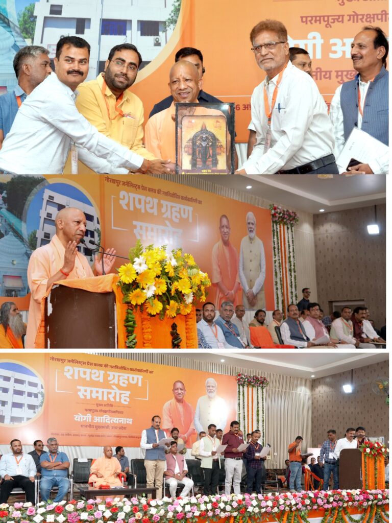 सीएम Yogi Adityanath ने आज Gorakhpur Journalists Press Club की नवनिर्वाचित कार्यकारिणी के शपथ ग्रहण समारोह में सहभागिता की। इस अवसर पर मुख्यमंत्री ने कहा कि पत्रकारिता समाज का आईना होती है, जो समाज की वास्तविकताओं को सामने लाकर जनजागरूकता बढ़ाने का महत्वपूर्ण कार्य करती है।