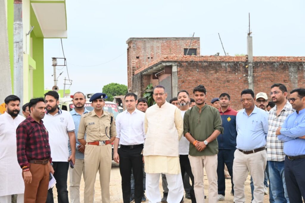 खटीमा में आयोजित होने वाले सैनिक सम्मान समारोह की तैयारियों को लेकर कार्यक्रम स्थल का निरीक्षण करते सैनिक कल्याण मंत्री गणेश जोशी