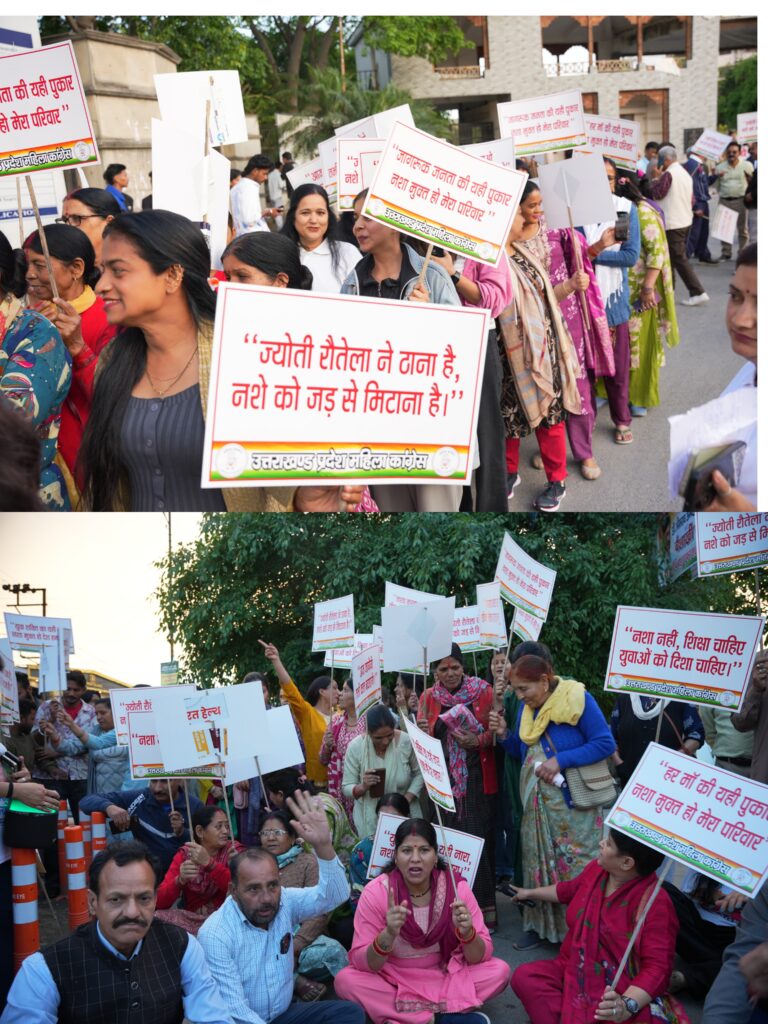 इसी के विरोध में ज्योति रौतेला के नेतृत्व में दून यूनिवर्सिटी से शहीद गिरीश भद्री चौक (बंगाली कोठी) तक पैदल जनजागरण मार्च निकाला गया, जिसमें बड़ी संख्या में युवा, महिलाएं और बुजुर्गों ने सहभागिता की। इस दौरान बड़ी संख्या में वरिष्ठ कांग्रेसजन भी उपस्थित रहे और सभी ने एकजुट होकर नशे के खिलाफ आवाज बुलंद की।