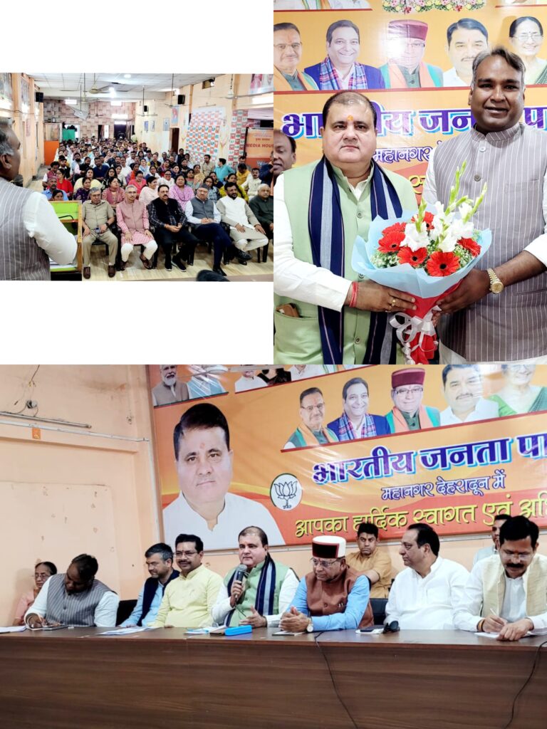 कार्यक्रम में महानगर के अध्यक्ष सिद्धार्थ उमेश अग्रवाल ने प्रदेश अध्यक्ष राज्यसभा सांसद महेंद्र भट्ट जी का स्वागत अभिनंदन किया एवं कार्यकर्ताओं को अवगत कराया की 14 अप्रैल को देश के प्रधानमंत्री आदरणीय नरेंद्र मोदी जी का देहरादून महानगर में रोड शो वह जनसभा होने जा रही है जिसके लिए हम सभी कार्यकर्ताओं की एक महत्वपूर्ण जिम्मेदारी है कि इस कार्यक्रम को भव्य स्वरूप देकर देश के यशस्वी प्रधानमंत्री जी का हम स्वागत अभिनंदन करें।_____कार्यक्रम में राज्यसभा सांसद प्रदेश अध्यक्ष महेंद्र भट्ट जी ने भी सभी कार्यकर्ताओं का स्वागत अभिनंदन किया और कहा कि यह हम सब की सौभाग्य की बात है कि देश के यशस्वी प्रधानमंत्री आदरणीय नरेंद्र मोदी जी का देवभूमि में आगमन होने जा रहा है हम सब जानते हैं कि प्रधानमंत्री जी का उत्तराखंड प्रदेश से विशेष लगाव है और जिसके चलते हम सब लोग सौभाग्यशाली हैं प्रधानमंत्री जी समय-समय पर उत्तराखंड में नई सौगात के साथ उत्तराखंड वासियों का विशेष ध्यान रखते हैं और अब भी वह देहरादून दिल्ली हाईवे जनता को समर्पित करने वाले हैं इसका विधिवत उद्घाटन कर रोड शो करते हुए एक बड़ी जनसभा को संबोधित करेंगे हम सभी कार्यकर्ताओं की नैतिक जिम्मेदारी है कि हम उनका स्वागत अपनी पारंपरिक वेशभूषा संस्कृति के साथ करेंगे।