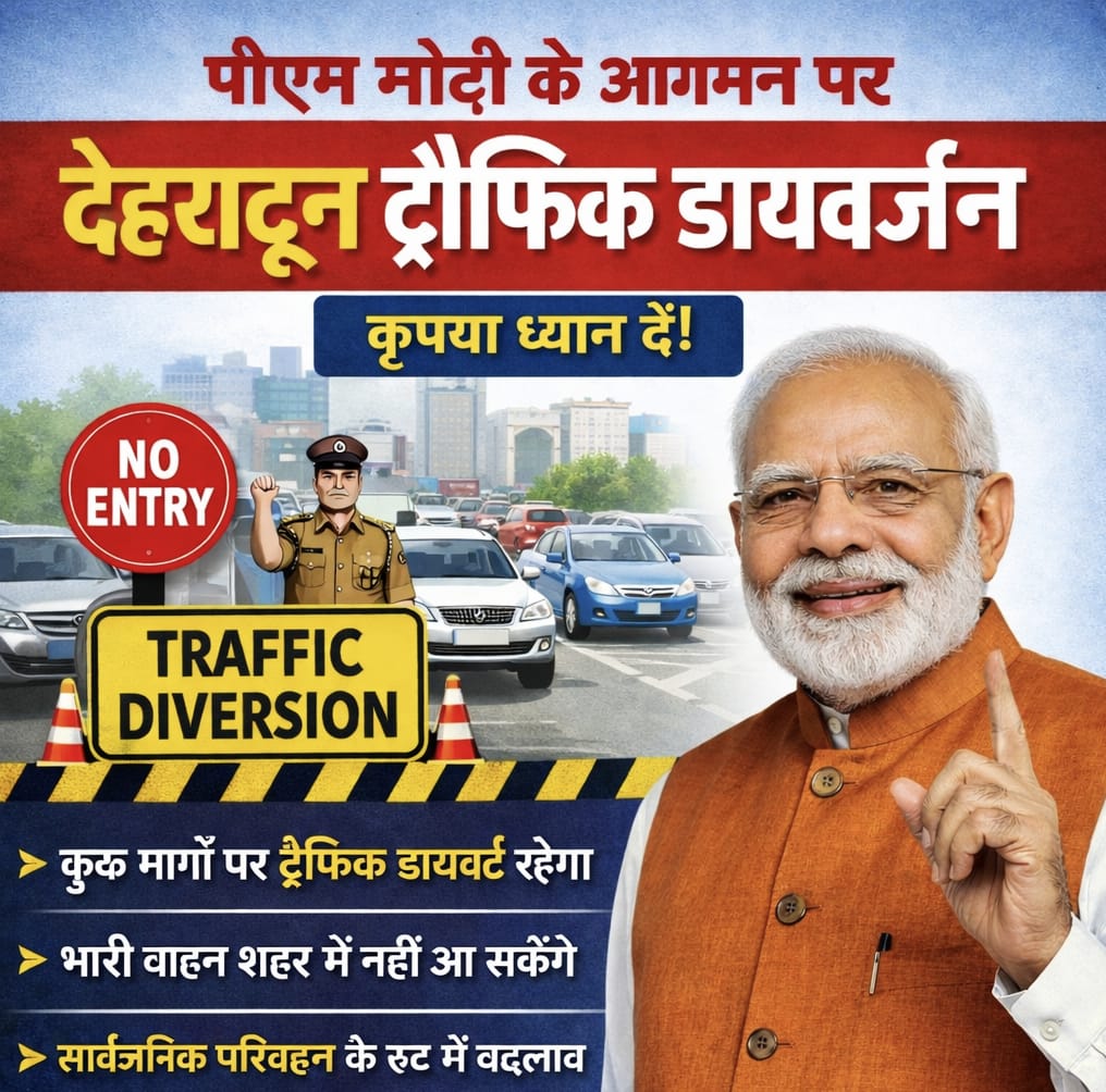 पीएम मोदी के देहरादून दौरे को लेकर ट्रैफिक डायवर्जन, कई रास्ते रहेंगे बंद